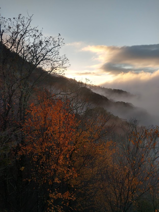 This is a nice little hike, but no joke—you won’t need to workout the legs for a few days after. The internet tells me it’s 5 miles round trip if you make it to the top of Little Bearwallow Mountain, which the internet suggests most people do. I didn’t make that far. I only made it to the titular Wild Cat Rock, which was a very steep uphill climb mainly consisting of steps carved into rock. The hike was mostly foggy when I went, but I was blessed with an absolutely gorgeous fall sunset from my Wild Cat perch.