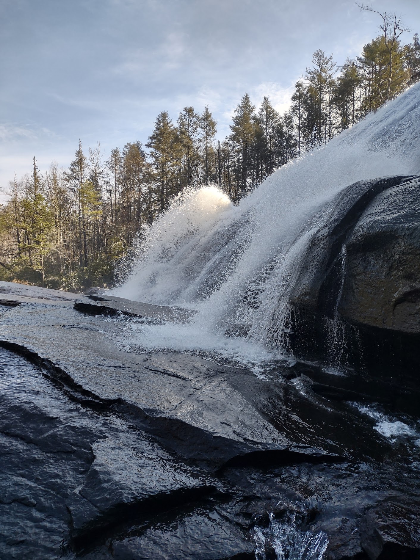 You know what? It’s overrated no more. Much like a trip to the beach, a river float, or work productivity, the weather makes all the difference. It was still somewhat overcast and a tad chilly when we got to Triple Falls, but warm with freshly breaking sun when we got to High Falls, and I’m telling you, it was glorious. There were only a handful of other people exploring the base of the High Falls last Saturday morning and the way the sun was hitting the water made them almost look frozen.
