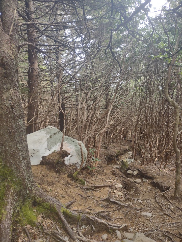 I like Shining Rock so much because you really feel like you’re in the middle of nowhere when you’re there. I hate to be the guy who says being able to see towns and houses from mountain summits takes away from the view, but…I am that guy. And I love the Parkway, but it’s omnipresent—it’s sight, the sound of its traffic—on so many of the hikes off of it. When you’re in the Shining Rock Wilderness, you can’t see any towns, can’t see the parkway, and can’t hear any cars. You’ll run into far fewer people than you will at Black Balsam, but the Art Loeb Trail, in general is very popular with campers. I’ve always run into enough people for it not to feel creepy (my brother and I once did a particularly remote Adirondack HIke, and something is very disconcerting about not seeing any other people for two hours or so). I had the summit of Shining Rock all to myself for twenty minutes or so, which was glorious.