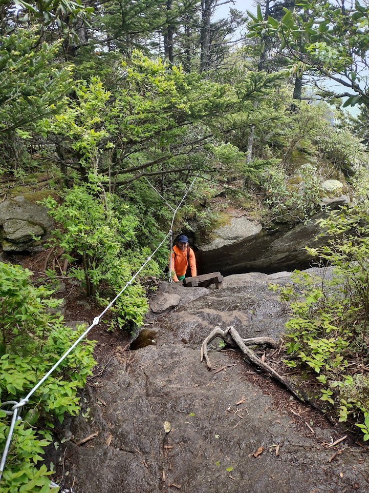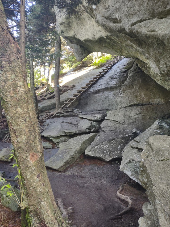 Grandfather Mountain has been on my radar for some time. It’s about an hour and a half from Asheville and famous for its swinging bridge, with it proudly touts as being the “mile-high swinging bridge.” It’s also renowned for the Grandfather Trail, a high altitude, a technically challenging trail that stretches from the peak of Grandfather Mountain to Calloway Peak, summiting McCrae Peak in the middle. The trail is full of rock scrambles, caverns, and very steep sections that require the assistance of cables and ladders. A friend of mine did Grandfather Mountain a week before me and told me it was one of his favorite Western North Carolina Hikes to date (he’s also a somewhat new Ashevillian and fellow PA ex-pat, so we have similar lists of hikes to check off). He neglected to tell me it was terrifying.