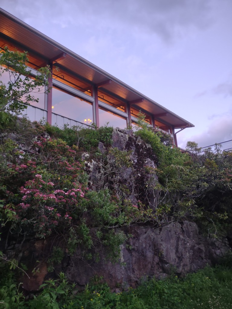 Last Christmas, my brother, who had spotted the Pisgah Inn on the way back from a sunset Black Balsam hike when he visited (and whom I’d shared a fun afternoon at Virginia’s Skyland on the Skyline Drive—Shenandoah National Park’s version of the Blue Ridge Parkway) got me a Pisgah Inn gift card. He came down this past Memorial Day Weekend, and I booked us a night at the inn and made dinner reservations at the restaurant. Now that I’ve stayed there, I still have the same question: why isn’t the Pisgah Inn a hopping, Asheville-adjacent hangout?
