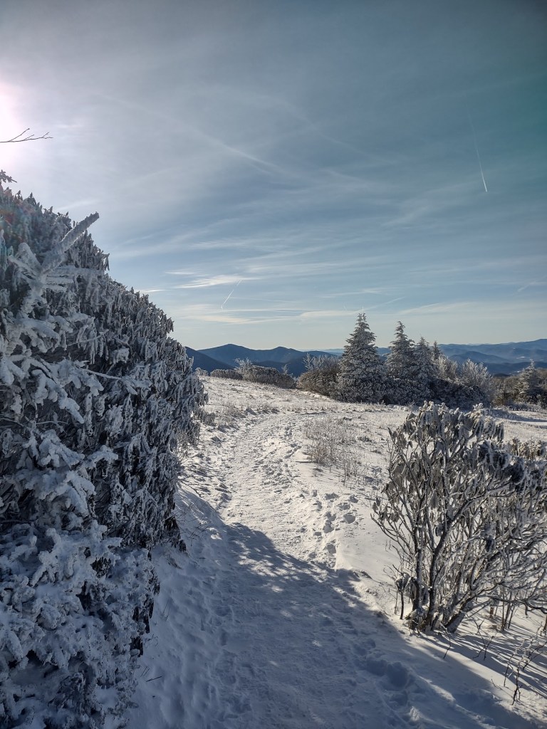 I’ve done a winter hike to Roan Highlands in the past, and I’ve done several sunrise hikes there in the summer, but never committed to a winter sunrise hike until this year (next up: summer sunset on Grassy Bald). Moving forward, this will be a tradition because despite the cold and the wind (and it was very cold and very windy), this was one of those consider-kissing-the-ground-and-thanking-god-for-being alive hikes. I really don’t think I could capture via words how tranquil and gorgeous it was being up there in the snow, and honestly, I’m not going to attempt. This post was always going to be about the pictures because sometimes there’s not much more to do say than, hey, this was an outrageously beautiful hike.