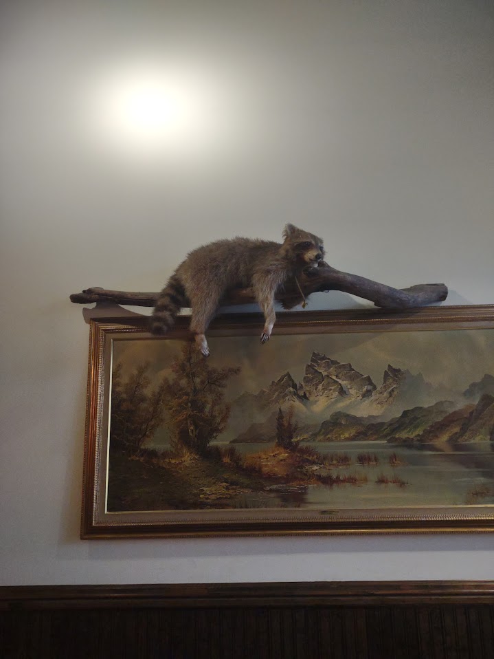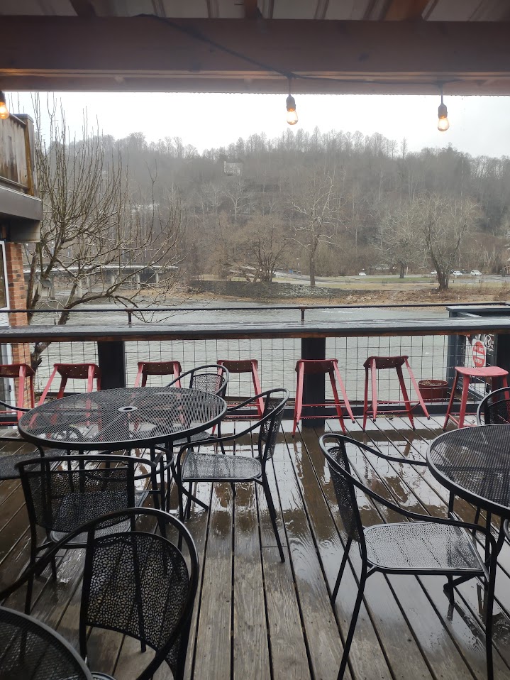 The weather wasn’t cooperating with us on Friday. We woke up, and it was pouring, so the hike went out the window. Instead, after a lovely breakfast at Liberty House Cafe, we headed up to Hot Springs, where we had two beers at Big Pillow Brewing, which I knew Maura would dig. After walking around a few shops in Hot Springs, we went to Marshall and had pizza at Mad Co. Brew House. Again, we walked around some Marshall shops, the highlight being the French Broad Exchange, where I purchased 5 more books I probably don’t need (not one to be left out; Maura purchased four). We were prepared to leave town when we passed Mal’s, a neighborhood bar I’d only been to once before, but long enough to know Maura would appreciate the mix of vintage kitsch, taxidermy, and low-cost regional brews. We had a lovely time at Mal’s and then embarked on a rainy ride back to Asheville.