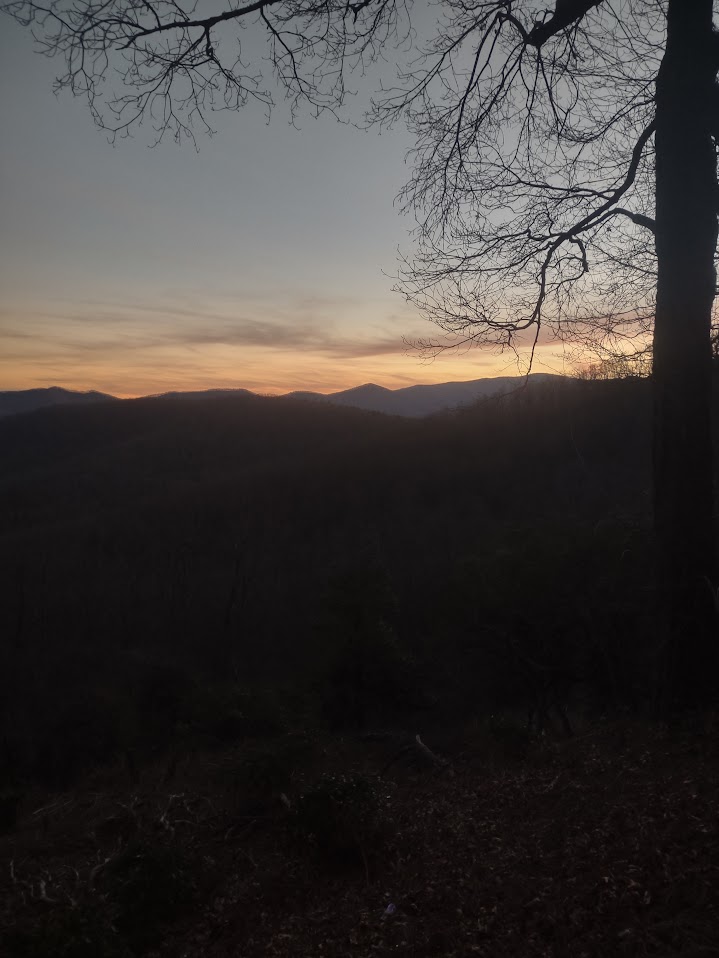 I went home and tried to sleep after that…but couldn’t. I was up…and it was a gorgeous day, so after grabbing lunch with a friend at Pizza Mind, I read one of my newly purchased books all afternoon at Riverside Park in Woodfin. When it started getting dusky—and I finished my book—I made to go home, but the weather was too nice, and the weekend was too good, I didn’t want to end things, so figured I’d go back up to the parkway to watch the sunset on a very fun weekend. Before realizing I was on E, I passed two gas stations and made a mental note that I should probably get gas while passing a 3rd right before getting on the parkway.