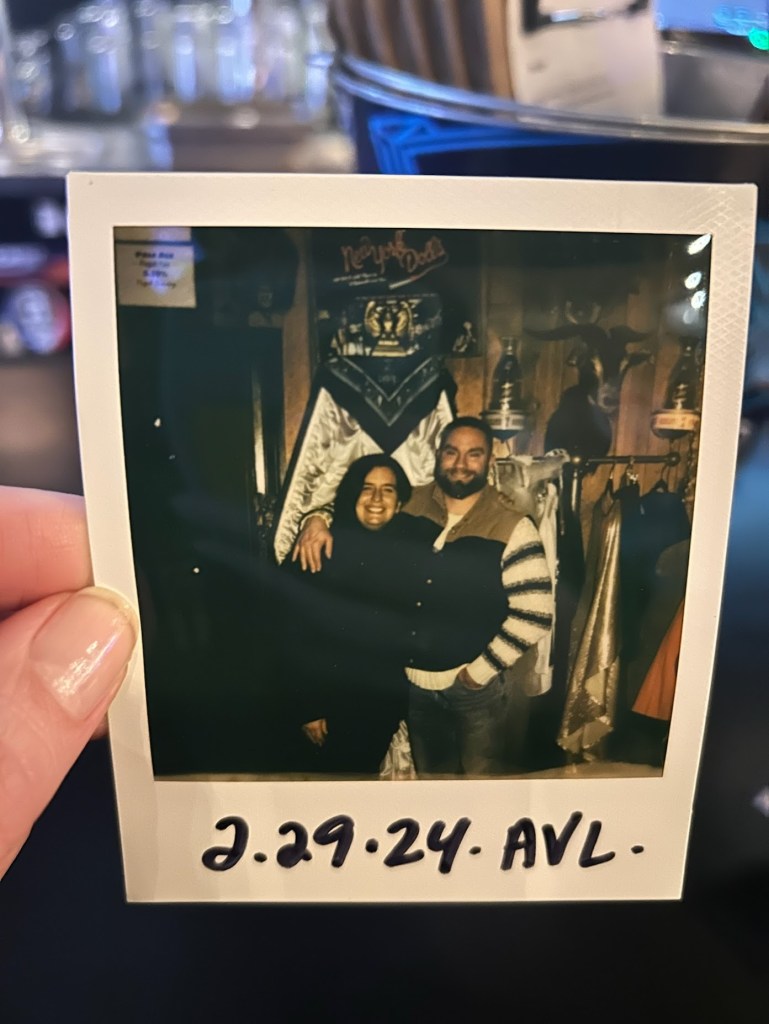 We had a lovely Fairview evening sampling beers at Turgua and Whistle Hop on Thursday. I’d planned initially on staying on this side of town for dinner—I knew Maura would love The Piazza as much as I do—but I had not planned on having meetings I couldn’t miss from 1-3:30 Thursday afternoon after picking her up, and hadn’t planned on giving her my car, asking her to vacate my apartment for 2.5 hours before we started gallivanting, and suggesting the nearby Piazza for lunch, which she took advantage of (they have pizza and a salad lunch deal for $12.00). Not wanting Maura to double dip on restaurants, I suggested we take advantage of our free time on Thursday to check out my favorite BBQ, Iron and Oak Brisket Company, and Riverside Rhapsody Brewing. From there, we also stopped at Zillicoah, The Getaway, and then ended the night in West Asheville, having a delicious Vermont cider (we’re both obsessed with anything Vermont) at The Golden Pineapple and a possibly even more delicious Hamm’s at Fleetwood’s, where we purchased a polaroid photo to echo the one we took on Maura’s first visit four years ago (we have a nice little collection of three going at the moment).