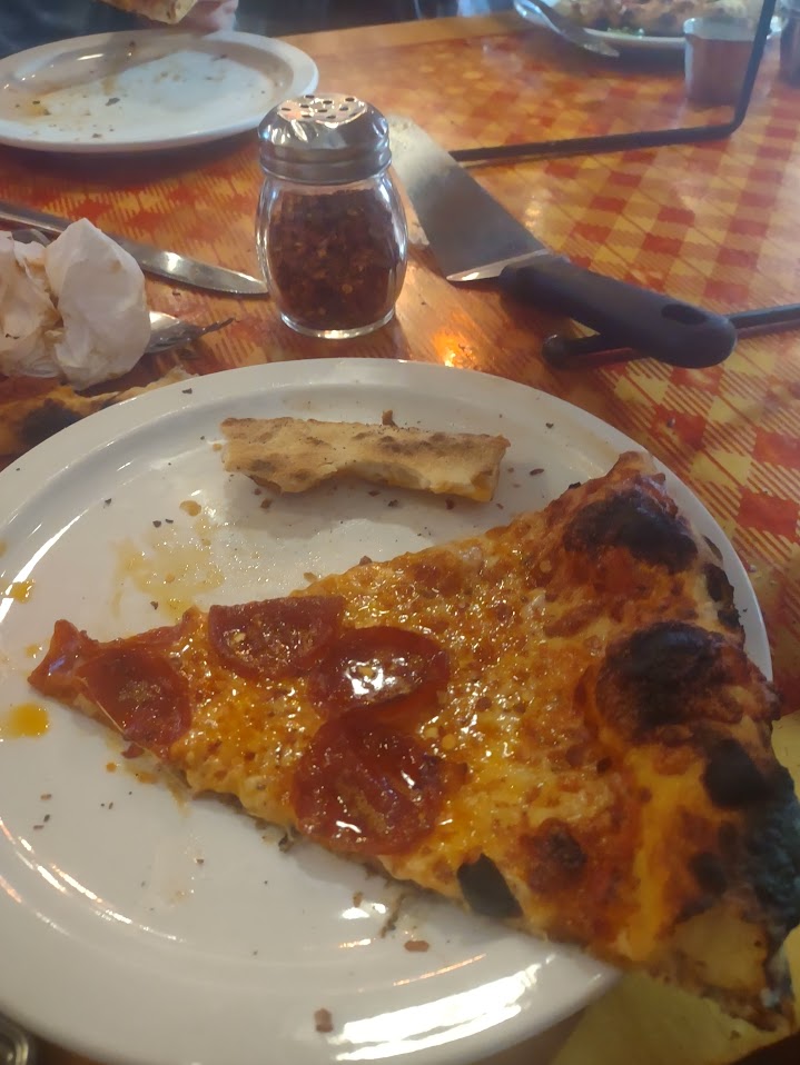 Now, if you’re into overpriced, woodfired pizza with upscale toppings—which I am in the mood for occasionally—then Asheville is your town. However, if you were raised like me, in the Northeast, where even most small towns have 2-3 more-than-decent old-school pizza-parlor offerings, you might feel like you’re missing something. Like, I sometimes just want a plain, moderately priced pie that isn’t reinventing the wheel. Sometimes I just want a big, greasy slice of pizza or an uncomplicated pie I can eat in its entirety in one sitting (aka the reason I still am a frequent patron of Pizza Hut takeout—if I had to rank my very favorite pizzas, I would unironically include Pizza Hut Thin-N-Crispy® in my top five).