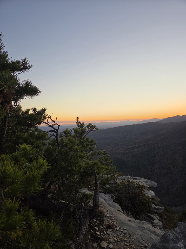 While it takes more effort to summit Shortoff Mountain, like Black Balsam, the views are pretty impeccable, so I kind of get the chaos. It was just unexpected. I will say, though, that—aside from the rock-gym Romeos—I was able to find a spot to watch the sunset a bit removed from the general craziness (the spot right where the trail flattens and you get your first view of the actual gorge). Would recommend and will be doing again.